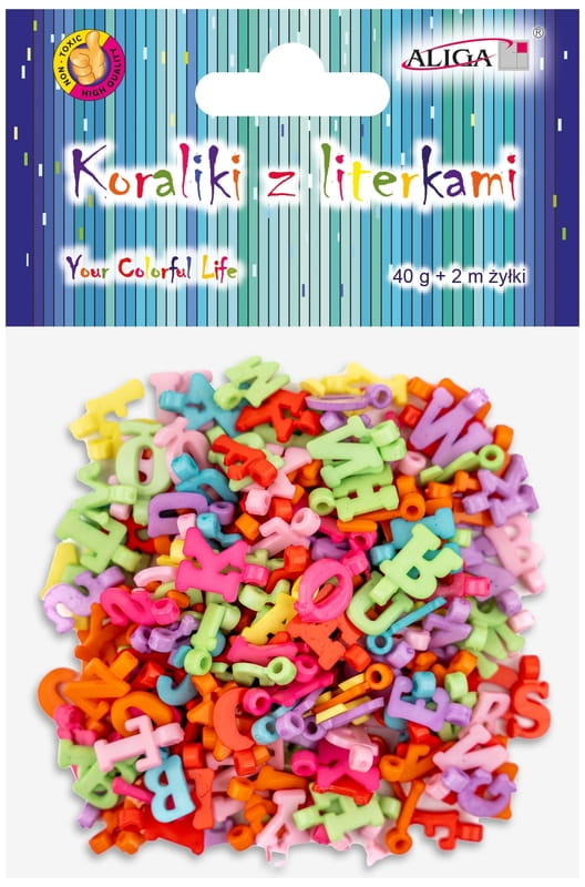 Koraliki plastikowe literki 2 cm 40g + 2 m żyłki, Aliga