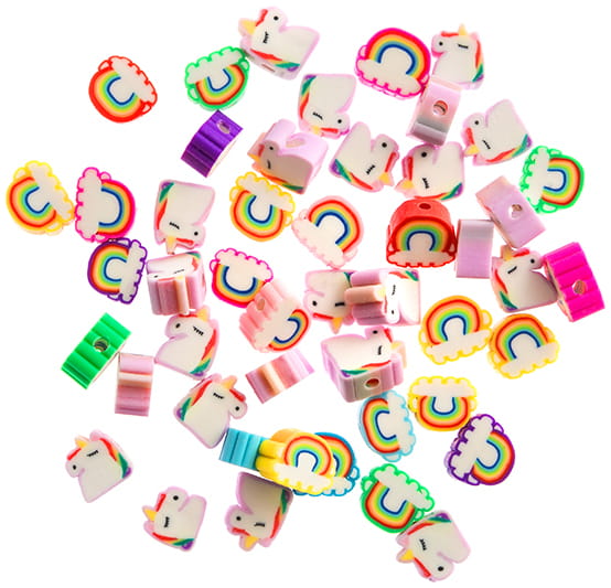 Koraliki polimerowe, Jednorożce i tęcze, 1cm, 48szt, Dp Craft