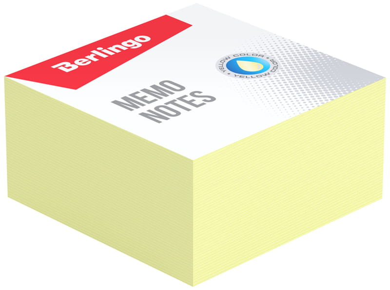 Kostka nieklejona, 9x9x4, 5cm, 80gr/m2, żółta, Berlingo