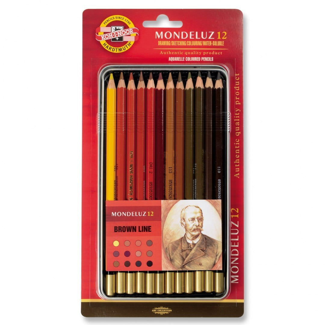 Kredki akwarelowe Mondeluz Koh i Noor odcienie brązu 12 kolorów w metalowej kasecie