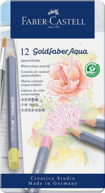 - Zestaw kredek Goldfaber Aqua FABER-CASTELL w metalowym opakowaniu.