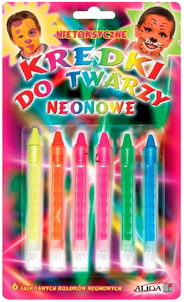 Kredki do malowania twarzy neonowe 6 kolorów wysuwane, Aliga