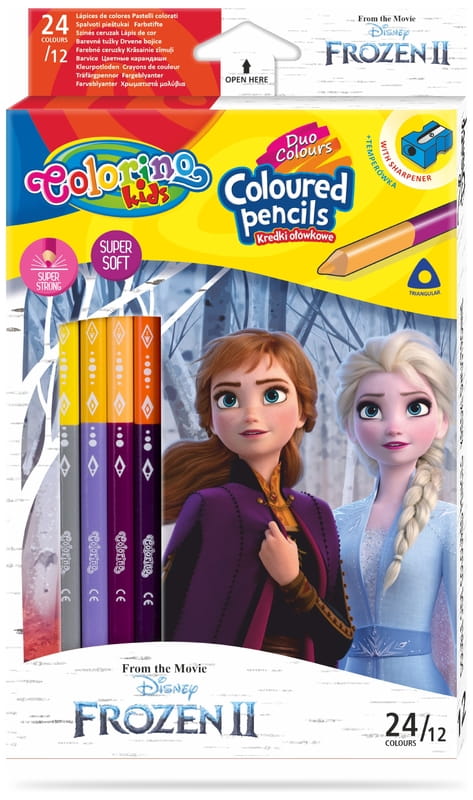 Kredki ołówkowe dwustronne Disney Frozen 12 sztuk 24 kolory trójkątne Colorino