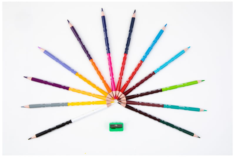 Kredki ołówkowe Colorino 24 kolory w zestawie z temperówką. Trójkątny, ergonomiczny kształt korzystnie wpływa na prawidłowy chwyt kredki. Kredki są dwustronne, dzięki czemu oszczędzamy przestrzeń w piórniku. Każda końcówka ma inny kolor rysika. Rysiki są bardzo wytrzymałe, kredki nie kruszą się w trakcie kolorowania i bardzo łatwo się temperują. Podczas produkcji kredek zostały zachowane wszelkie wytyczne i normy UE.