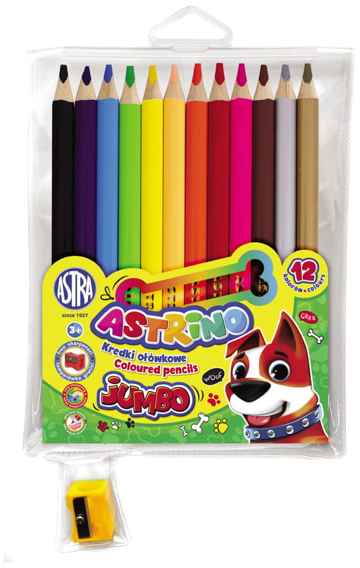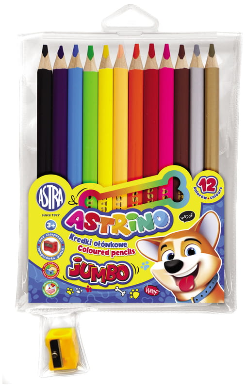 Kredki ołówkowe grube 12 kolorów Jumbo + temperówka Astrino, Astra
