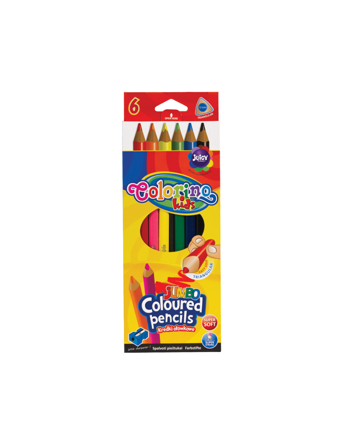 Kredki ołówkowe grube 6 kolorów Jumbo trójkątne Colorino