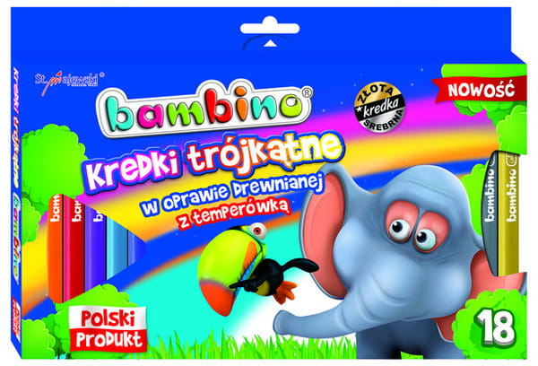 Kredki ołówkowe grube Bambino 18 kolorów trójkątne + temperówka Jumbo