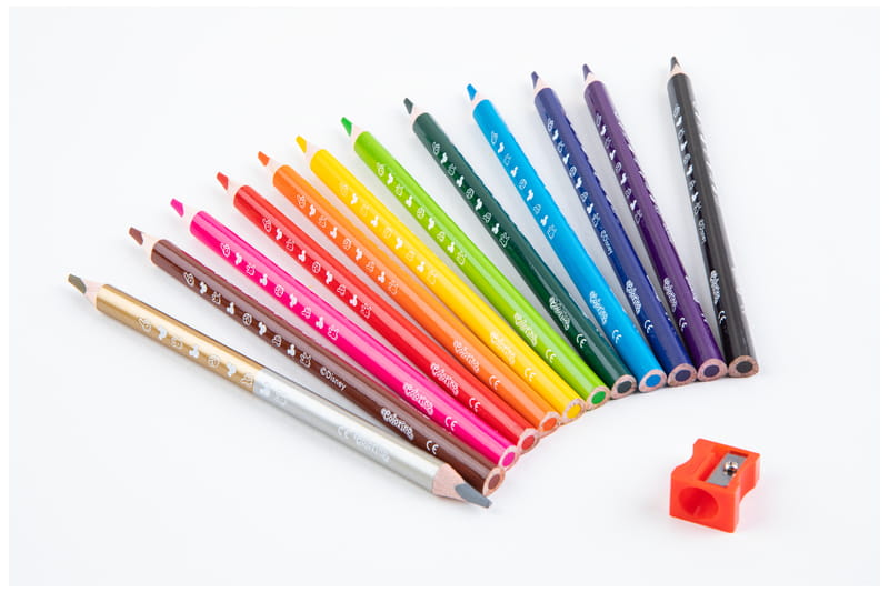 Kredki ołówkowe Jumbo Colorino 13 kolorów w zestawie z temperówką. Duże trójkątne kredki najwygodniejsze do nauki pisania i rysowania przez najmłodszych. Ich grubość zdecydowanie ułatwia chwytanie przez małe rączki. Rysiki są szerokości aż 5 mm, stawiają doskonale wyraźne, szerokie linie. Kredki są bardzo wytrzymałe, przystosowane do częstych upadków, nie kruszą się w trakcie kolorowania i bardzo łatwo się temperują. Podczas produkcji kredek zostały zachowane wszelkie wytyczne i normy UE.