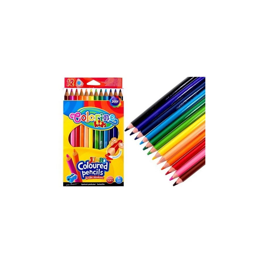Kredki ołówkowe grube trójkątne Colorino 12 kolorów Jumbo z temperówką