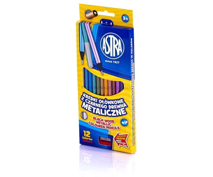 Kredki ołówkowe metaliczne Astra 12 kolorów z czarnego drewna