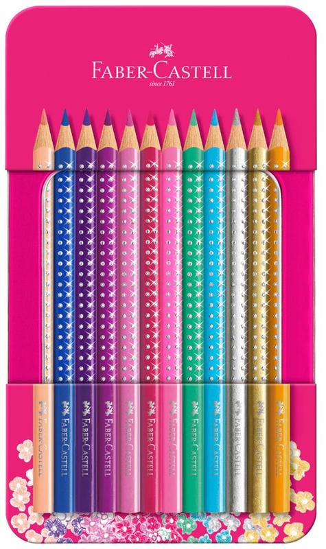 - Zestaw kredek ołówkowych Sparkle FABER-CASTELL. 12 kolorów w metalowym opakowaniu.