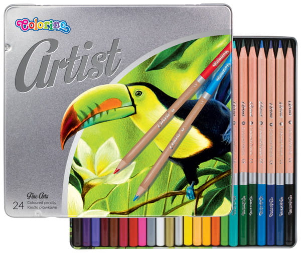 Kredki ołówkowe w metalowym pudełku 24 kolory okrągłe Colorino Artist