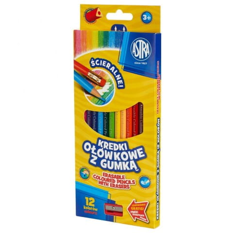 Kredki ołówkowe wymazywalne z gumką Astra 12 kolorów