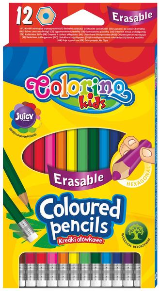 Kredki ołówkowe z gumką 12 kolorów wymazywalne Colorino