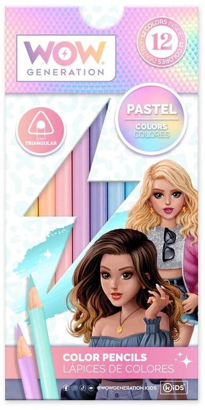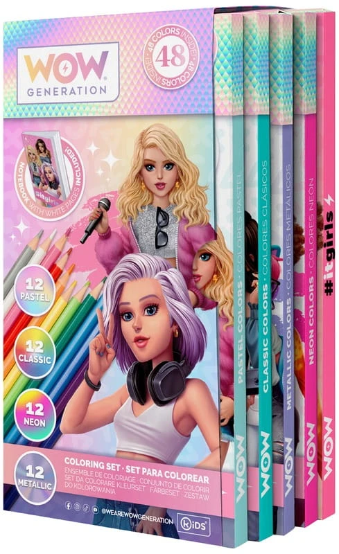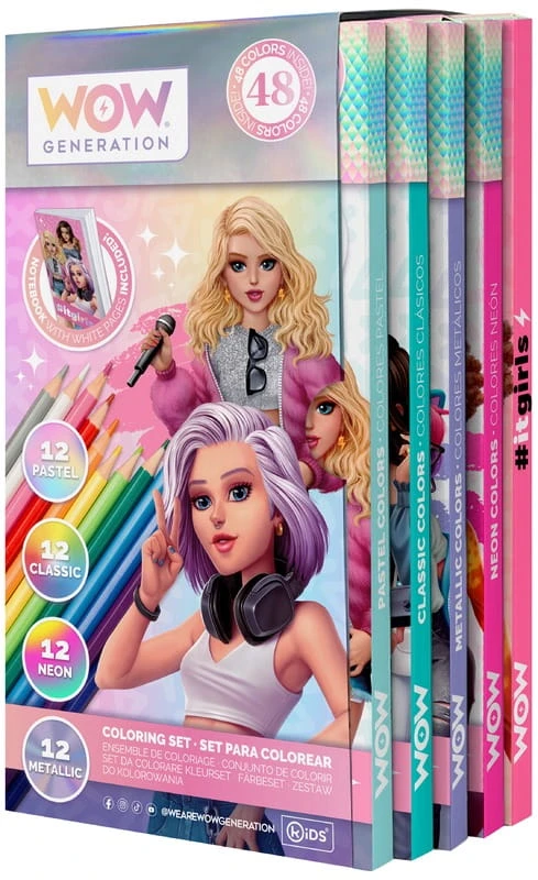 Kredki ołówkowe zestaw dla dziewczynki 12 kolorów x 4 rodzaje + notes WOW, Kids