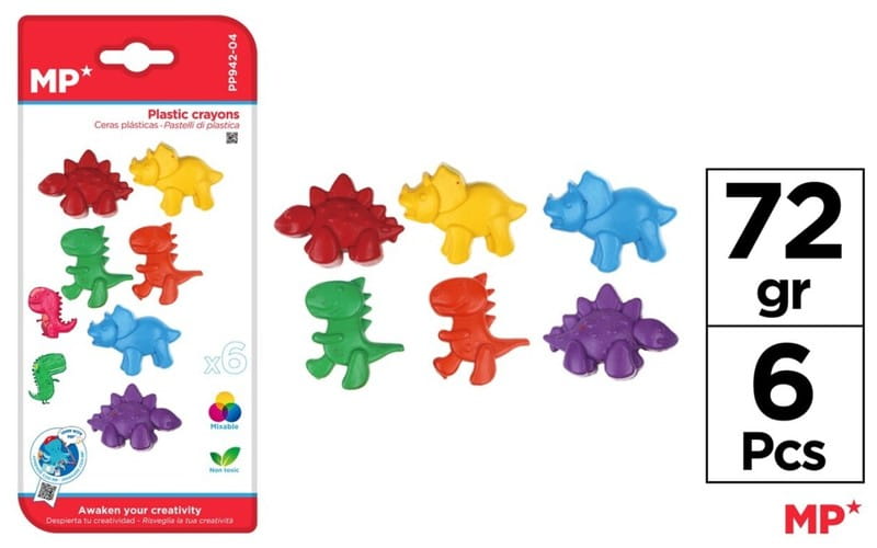 Kredki świecowe bardzo czyste i wytrzymałe, o bardzo zabawnych kształtach. Świetna zdolność krycia i wysoka odporność na wstrząsy. Idealne, aby zachęcić dzieci do kreatywności ze względu na ich różne kształty, kolory i ponieważ są nietoksyczne.