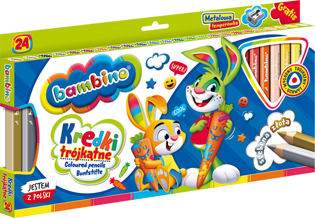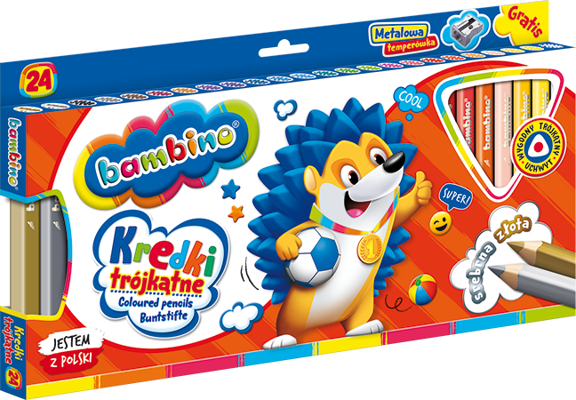 Kredki szkolne Bambino Grube Trójkątne 24 kolory Jumbo + temperówka