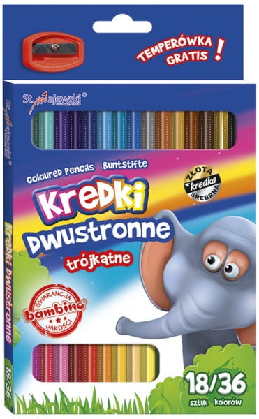 Kredki szkolne dwustronne Bambino 18 sztuk - 36 kolorów z temperówką trójkątne, St. Majewski