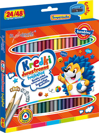 Kredki szkolne dwustronne Bambino 24 sztuki - 48 kolorów z temperówką trójkątne, St. Majewski