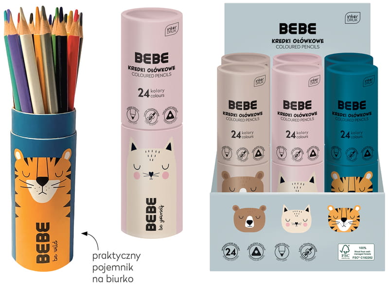 24 intensywne kolory. Złota i srebrna kredka w zestawie. Trójkątny profil. Łatwe temperowanie. Supermiękkie i niełamliwe. Kartonowa tuba do przechowywania, która może być praktycznym pojemnikiem na biurko. Produkt z oświadczeniem FSC - dbamy o środowisko!