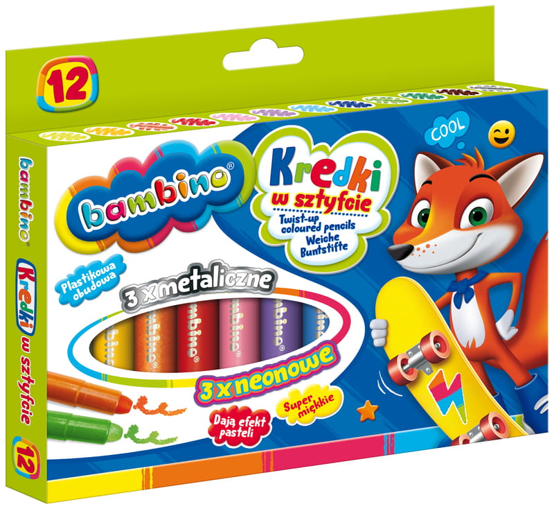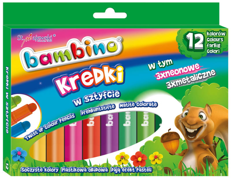 Kredki wykecane w sztyfcie Bambino zestaw 12 kolorów St. Majewski