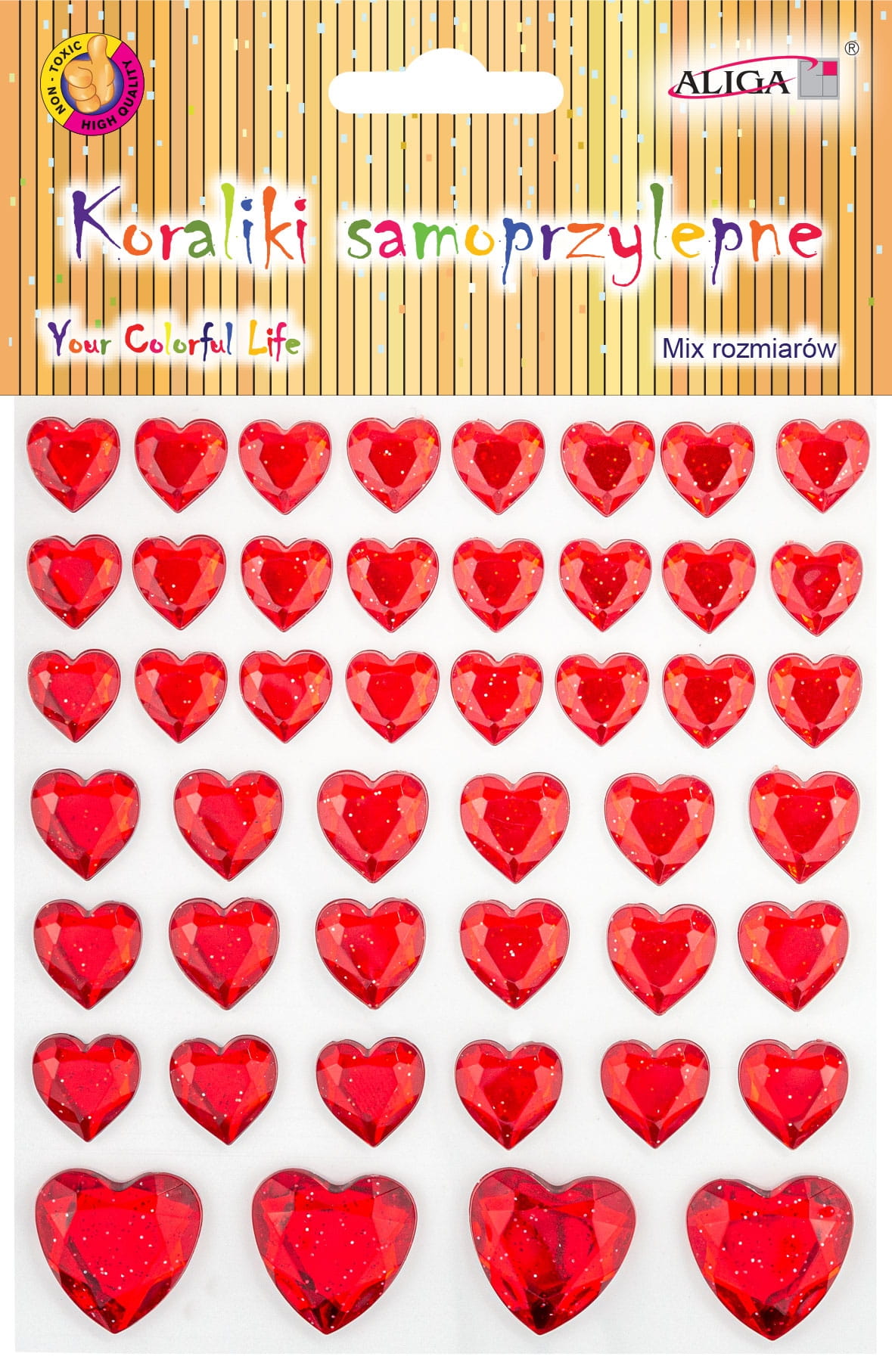 Kryształki samoprzylepne dżety czerowne serca 46 sztuk mix wielkości, Aliga