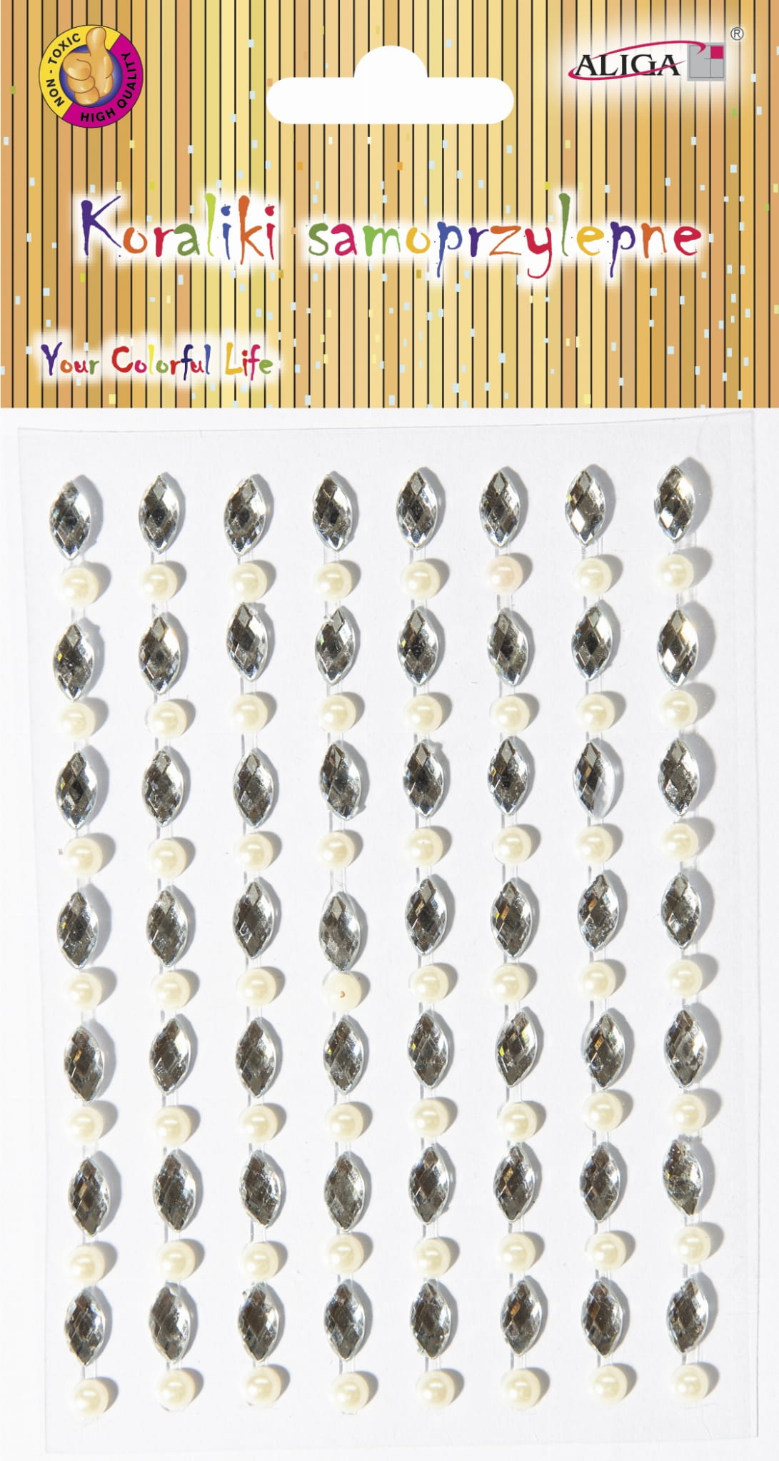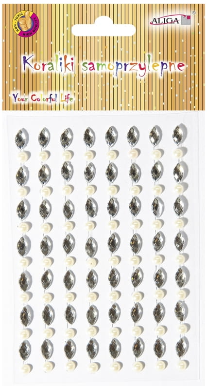 Krzystałki i perełki samoprzylepne mix rozmiarów, Aliga