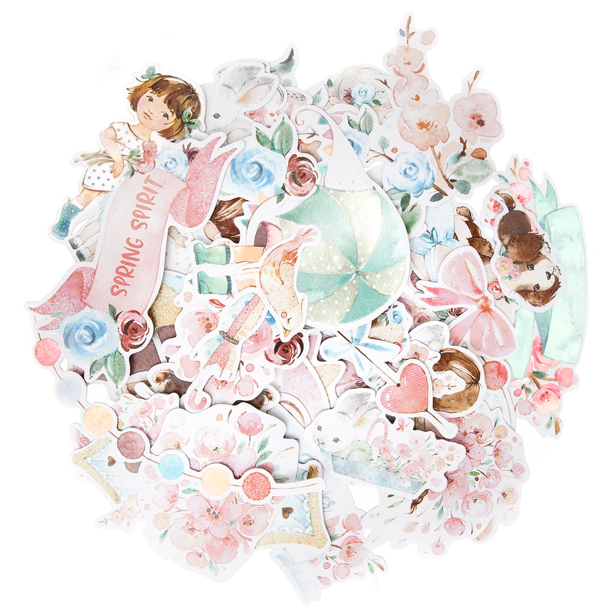 Utrzymane w pastelowej tonacji, pokryte opalizującym brokatem ozdobne elementy z tektury dodadzą uroku Twoim pracom.