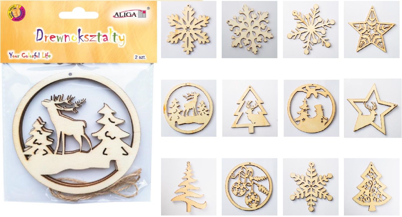 Kształty drewniane zawieszki 2 sztuki 10 cm CDX-3600, Aliga