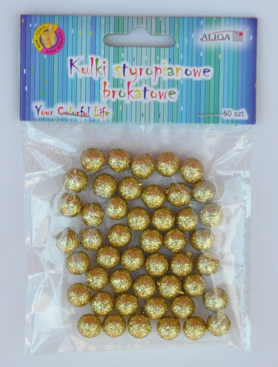 Kulki styropianowe brokatowe 10mm złote op. 50szt. KSB-1057, Aliga