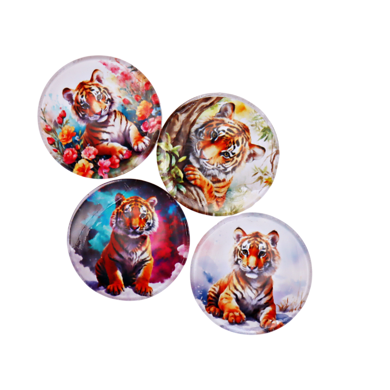 Magnesy Ozdobne Tygrys szklane 4 sztuki 3 cm, Madam