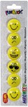 Zestaw okrągłych magnesów w żółtym kolorze z motywem uśmiechniętej buźki. Praktyczne i ozdobne. Sprawdzą się na wszelkich pokazach, zebraniach jak również w biurze, w szkole i w domu. Ciekawy wzór doda uroku każdej tablicy magnetycznej. Każde dziecko z chęcią przyczepi takie magnesy do tablicy np. z planem lekcji. Pakowane na blistrze po 6 sztuk.