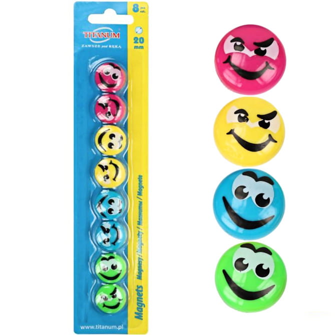 Magnesy uśmiechy buźki do tablic 20 mm 8 sztuk, Titanum
