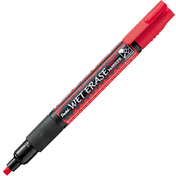 Marker kredowy czerwony 1,5 x 4 mm ścierany na mokro do szkła i tablic, Pentel