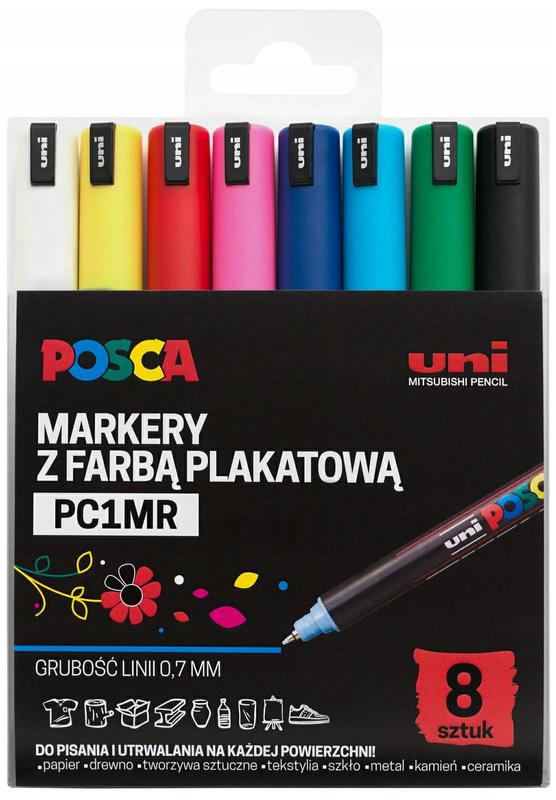 Marker pigmentowy Posca PC-1MR zestaw 8 szt., Uni