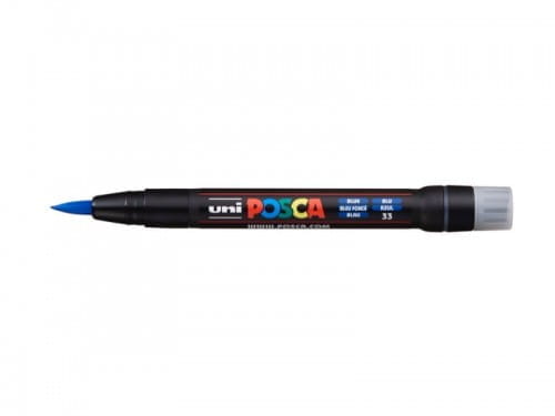 Marker z farbą Uni Posca PCF-350 z końcówką-pędzlem sprawdza się tam, gdzie inne nie dają rady: w zakamarkach, szczelinach itp. Miłośnicy malarstwa doceniają przyjemność malowania pędzlem bez towarzyszących temu zazwyczaj niedogodności. Początkujący i dzieci zapoznają się z pędzlem bez ryzyka