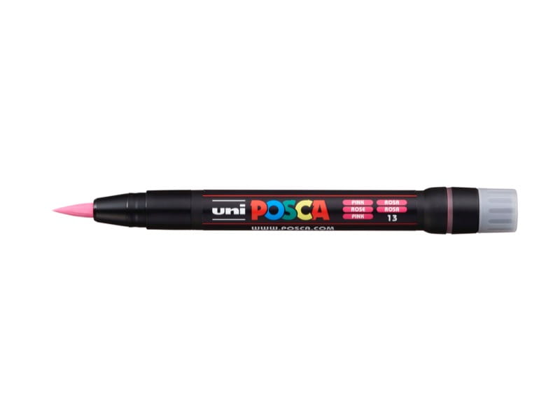 Marker z farbą Uni Posca PCF-350 z końcówką-pędzlem sprawdza się tam, gdzie inne nie dają rady: w zakamarkach, szczelinach itp. Miłośnicy malarstwa doceniają przyjemność malowania pędzlem bez towarzyszących temu zazwyczaj niedogodności. Początkujący i dzieci zapoznają się z pędzlem bez ryzyka