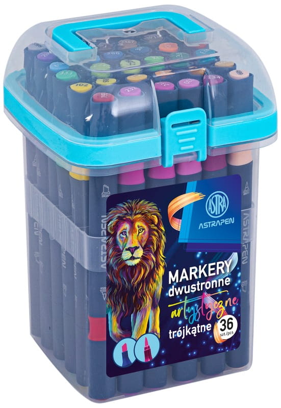 Markery artystyczne trójkątne dwustronne Pen 36-kol. - pędzelkowa i ścięta końcówka, Astra