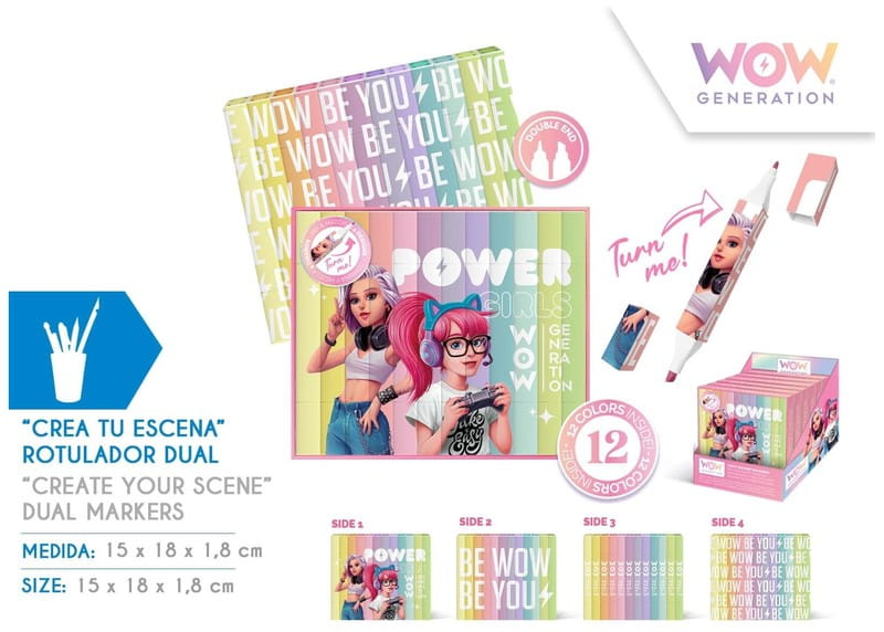 Markery dwustronne WOW Generation 12 kolorów, Kids