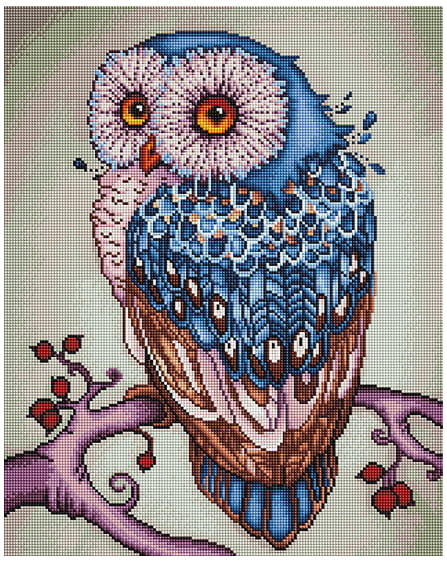 Mozaika diamentowa 40x50 - PD - Obraz kryształami Sowa na gałęzi, iPicasso