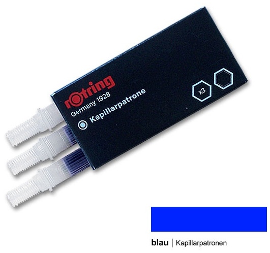 Naboje z tuszem kreśl. do Rapidograf nieb. 3 szt., Rotring