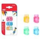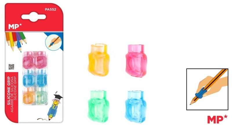 Nakładka do ołówka wykonany z przezroczystego silikonu.Nakładka umożliwia przyjęcie prawidłowej postawy podczas pisania. Idealna dla początkujących.Blister 6 sztuk: różowy, niebieski,pomarańczowy i zielony.