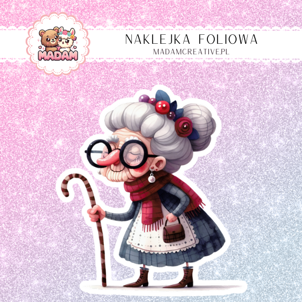 Naklejka Foliowa Babcia z Laską – Klasyka z Humorem! Madam