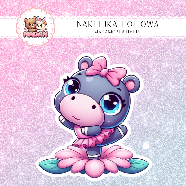 Naklejka Foliowa Hipopotam w Różach – Baletowa Gwiazda! Madam