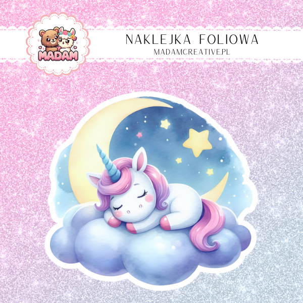 Naklejka Foliowa Jednorożec na Chmurze – Gwiezdny Relaks! Madam