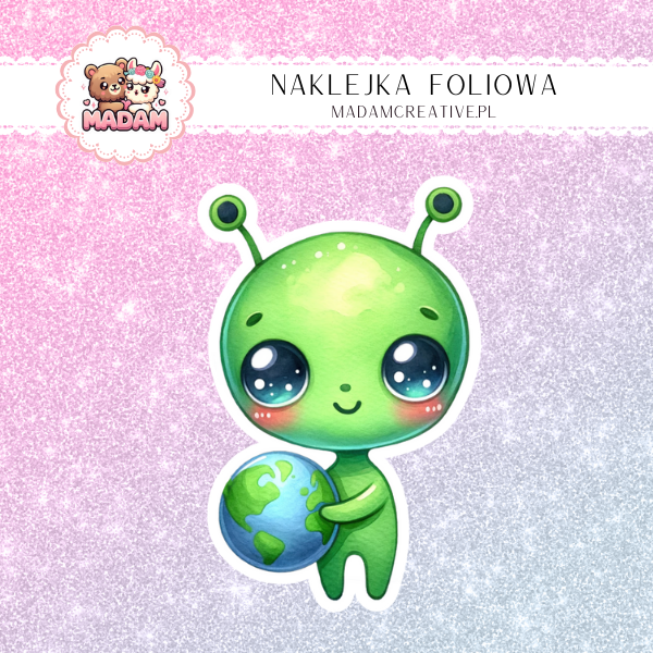 Naklejka Foliowa Kosmiczny Ufoludek – Przybyłem Po Słodycze! Madam