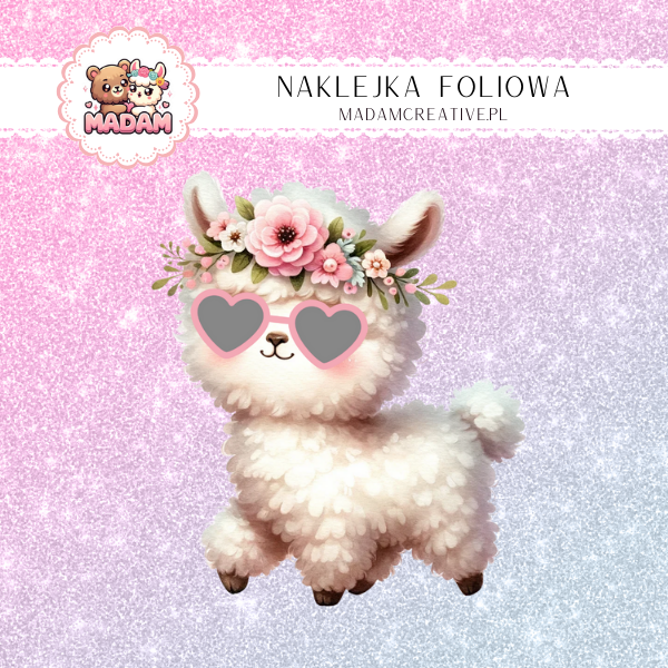Naklejka Foliowa Lama w Różowych Okularach – Widzi świat przez różowe szkła! Madam