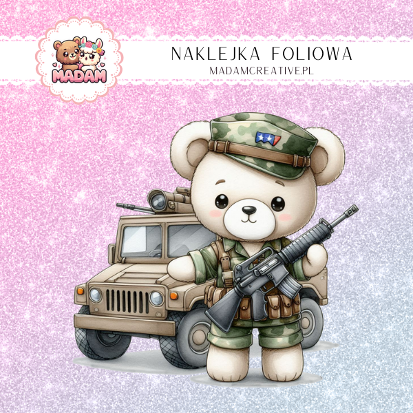 Naklejka Foliowa Miś Żołnierz – Gotowy na misję przytulania! Madam