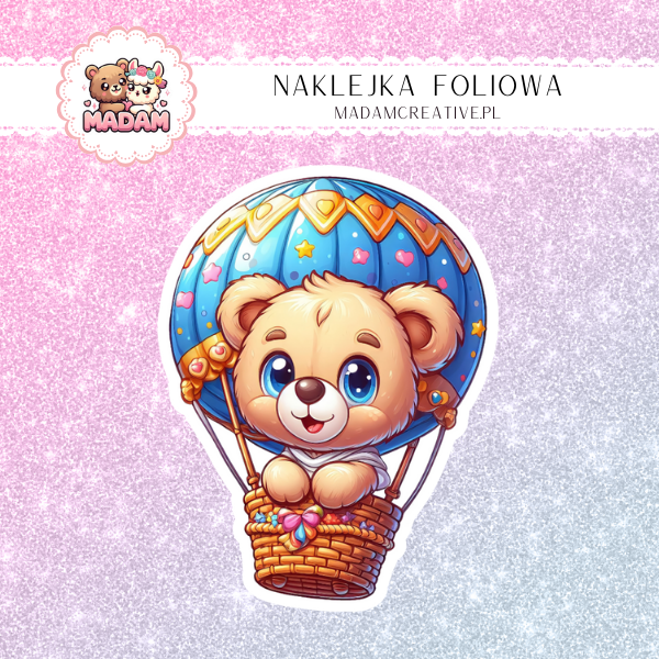 Naklejka Foliowa Miś w Balonie – Podróżnik w Chmurach! Madam