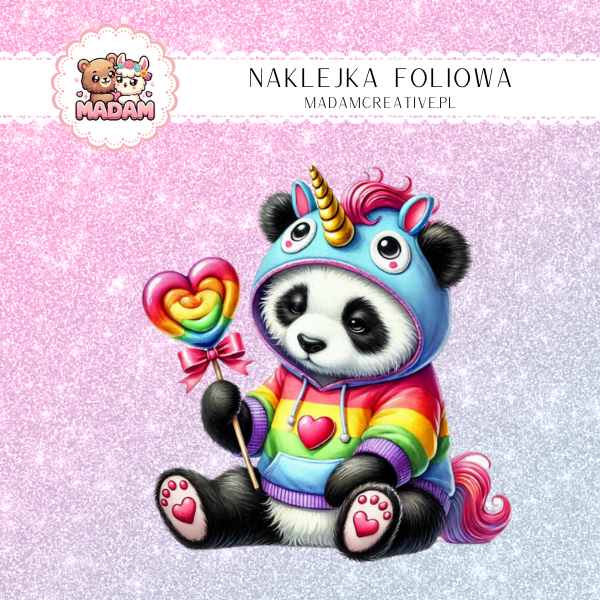 Naklejka Foliowa Panda Tęczowa – Słodycz tęczy i serca na jednej łapce Madam